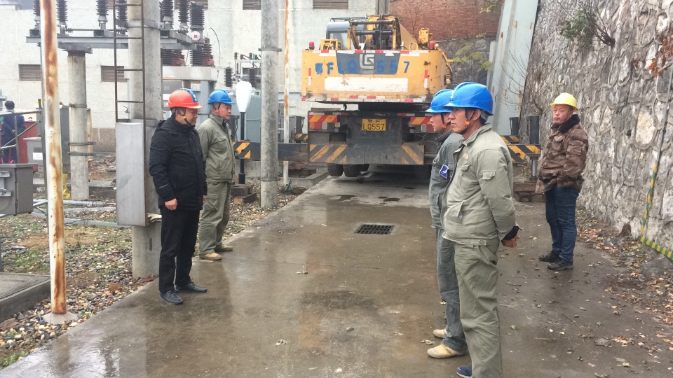 某藥廠變壓器增容改造現(xiàn)場(chǎng),施工人員頂著寒風(fēng)冒著冷雨召開(kāi)班前會(huì)